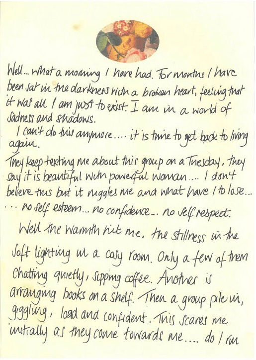 The letter writing tasks centred on belonging and an invitation to write to unknown women on their recovery journey and /or to our younger and future selves.